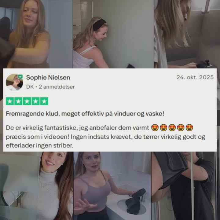 "Jeg var ret skeptisk før jeg bestilte, men jeg tænkte, hvorfor ikke give det et forsøg (især med specialtilbuddet...). Tja, jeg må sige, de er simpelthen magiske 😍 Disse klude absorberer absolut alt med det samme. De sparer mig så meget tid og gør mit liv nemmere. Jeg kan varmt anbefale dem!!"